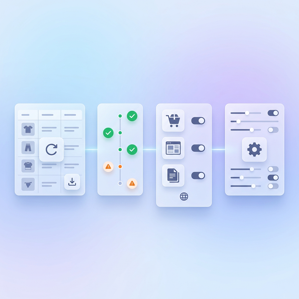 Browse your entire product catalog in a searchable DataTables view. See exactly what data Contexa has for each product. Re-sync individual items or export as CSV.
